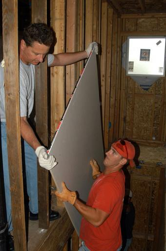 Keywords: US Navy 070502-N-9604C-001 Two Sailors maneuver a piece of sheetrock through an unfinished wall during a Habitat for Humanity community relations project.jpg en SAN DIEGO May 2 2007 Two Sailors maneuver a piece of sheetrock through an unfinished wall during a Habitat for Humanity community relations project Several Sailors from Commander Submarine Squadron 11 volunteered to help San Diego Habitat for Humanity and are currently working on completing several homes for families who qualify for the home ownership program U S Navy photo by Mass Communication Specialist Seaman Shannon K Cassidy RELEASED 2007-05-02 070502-N-9604C-001 Navy http //www navy mil/view_image asp id 45721 U S Navy photo by Mass Communication Specialist Seaman Shannon K Cassidy PD-USGov-Military-Navy Habitat for Humanity International Drywalls Naval Base Point Loma |