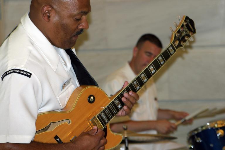 Keywords: US Navy 070524-N-2908O-003 Musician First Class Andre Avelino, lead guitarist and band leader for Navy Band Mid-South^rsquo,s Jazz Combo Group plays a guitar with three other Navy musicians in the Arkansas State Capitol Buildin.jpg en NORTH LITTLE ROCK Ark Feb 24 2007 - Musician First Class Andre Avelino lead guitarist and band leader for Navy Band Mid-South s Jazz Combo Group plays a guitar with three other Navy musicians in the Arkansas State Capitol Building s Rotunda The Jazz Combo was one of four band units from Navy band Mid-South to perform during Little Rock Navy Week Little Rock Navy Week is being conducted with cooperation between the Navy Office of Community Outreach Navy Recruiting District Nashville and the Navy Operational Support Center Little Rock Navy weeks are designed to show Americans the investment they have made in their Navy and increase awareness in cities that do not have a significant Navy presence U S Navy photo by Mass Communication Specialist 1st Class Steve Owsley RELEASED 2007-02-24 070524-N-2908O-003 Navy http //www navy mil/view_image asp id 46667 U S Navy photo by Mass Communication Specialist 1st Class Steve Owsley PD-USGov-Military-Navy North Little Rock Arkansas Guitarists with Ibanez guitars Ibanez AF Little Rock Navy Week