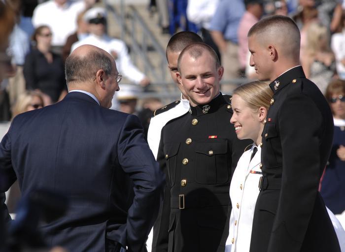 Keywords: US Navy 070525-N-3642E-041 Secretary of the Navy (SECNAV) The Honorable Dr. Donald C. Winter congratulates honor graduates before the start of the U.S. Naval Academy class of 2007 Graduation.jpg en ANNAPOLIS Md May 25 2007 - Secretary of the Navy SECNAV The Honorable Dr Donald C Winter congratulates honor graduates before the start of the U S Naval Academy class of 2007 Graduation and Commissioning Ceremony U S Navy photo by Chief Mass Communication Specialist Shawn P Eklund 2007-05-25 070525-N-3642E-041 Navy http //www navy mil/view_image asp id 46610 U S Navy photo PD-USGov-Military-Navy Graduation and Commissioning Ceremony May 25 2007 Donald C Winter |
