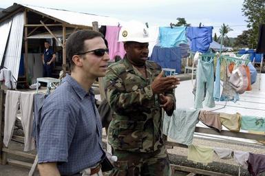 Keywords: US Navy 070623-N-6410J-021 Principal Director, Assistant Secretary of Defense for Partnership Strategy, Mr. Todd Harvey listens to a brief from Chief Utilitiesman Clinton Lyons about the construction site being repaired by Seab.jpg en LEGASPI Philippines June 23 2007 - Principal Director Assistant Secretary of Defense for Partnership Strategy Mr Todd Harvey listens to a brief from Chief Utilitiesman Clinton Lyons about the construction site being repaired by Seabees embarked with the amphibious assault ship USS Peleliu LHA 5 Peleliu is deployed in support of Pacific Partnership 2007 a four-month humanitarian assistance mission to Southeast Asia and Oceania that will include specialized medical care and various construction and engineering projects As requested by the Republic of the Philippines Peleliu will provide support by conducting medical dental and construction assistance programs ashore and afloat U S Navy photo by Mass Communication Specialist Seaman Matthew Jackson RELEASED 2007-06-23 070623-N-6410J-021 Navy http //www navy mil/view_image asp id 47515 U S Navy photo by Mass Communication Specialist Seaman Matthew Jackson PD-USGov-Military-Navy Images from US Navy location LEGASPI Philippines Utilitiesman |