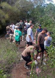 Keywords: US Navy 070629-N-8506S-002 Members of SEAL Delivery Team (SDVT) 1 place a small American flag next to a Milo tree sapling during the annual Never Forget Hoolaukanaka in the Hawaii Kai area.jpg en OAHU Hawaii June 29 2007 - Members of SEAL Delivery Team SDVT 1 place a small American flag next to a Milo tree sapling during the annual Never Forget Hoolaukanaka in the Hawaii Kai area The Milo tree is one of five trees planted during last year's event to commemorate the lives of five Navy SEALs killed in action in Afghanistan in 2005 The SEALs were part of SDVT-1 based out of Pearl Harbor Hawaii The Milo tree a native tree to Hawaii is symbolic of the versatility of the Navy SEALs as it can thrive both near the ocean and in the high rocky mountains of the islands U S Navy photo by Aviation Aerographer's Mate 2nd Class Christopher Steele RELEASED 2007-06-29 070629-N-8506S-002 Navy http //www navy mil/view_image asp id 48038 U S Navy photo by Aviation Aerographer's Mate 2nd Class Christopher Steele PD-USGov-Military-Navy Marine Corps Base Hawaii United States Navy SEALs |