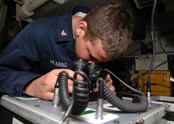 Keywords: US Navy 070716-N-1994L-041 Aviation Electronics Technician 1st Class Russell Vaughn tests the light receiving ability while performing maintenance on a pair of night-vision goggles aboard amphibious assault ship USS Bonhomme Ri.jpg en PERSIAN GULF July 16 2007 - Aviation Electronics Technician 1st Class Russell Vaughn tests the light receiving ability while performing maintenance on a pair of night-vision goggles aboard amphibious assault ship USS Bonhomme Richard LHD 6 Sailors perform maintenance on the goggles every 180 days to ensure they are kept in their optimum working state Bonhomme Richard Expeditionary Strike Group is operating in the 5th Fleet area of operations conducting maritime operations and supporting the global war on terrorism U S Navy photo by Mass Communication Specialist 3rd Class Robert C Long RELEASED 2007-07-16 070716-N-1994L-041 Navy http //www navy mil/view_image asp id 48325 U S Navy photo by Mass Communication Specialist 3rd Class Robert C Long PD-USGov-Military-Navy Aviation Electronics Technician Aboard USS Bonhomme Richard LHD-6 Night vision equipment