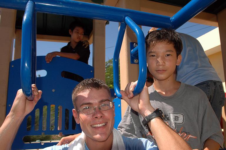 Keywords: US Navy 070722-N-9421C-148 Hull Maintenance Technician Fireman Phillip Wright poses for a photo with a local Vietnamese child on a newly constructed playground set at Hoi Mai Orphanage during an engineering civic action program.jpg en DA NANG Vietnam July 22 2007 - Hull Maintenance Technician Fireman Phillip Wright poses for a photo with a local Vietnamese child on a newly constructed playground set at Hoi Mai Orphanage during an engineering civic action program in support of Pacific Partnership 2007 Seabees with Naval Mobile Construction Battalion NMCB 7 and Amphibious Construction Battalion ACB 1 are working at the orphanage in support of Pacific Partnership The Pacific Partnership deployment to Vietnam continues to improve upon bilateral relations between the United States and Vietnam demonstrating our continued commitment to work together to address mutual issues and concerns U S Navy photo by Mass Communication Specialist 2nd Class Kerryl Cacho RELEASED 2007-07-22 070722-N-9421C-148 Navy http //www navy mil/view_image asp id 48585 U S Navy photo by Mass Communication Specialist 2nd Class Kerryl Cacho PD-USGov-Military-Navy Children of Da Nang Hoa Mai Orphanage Relations of the United States and Vietnam Hull Maintenance Technician United States Navy |
