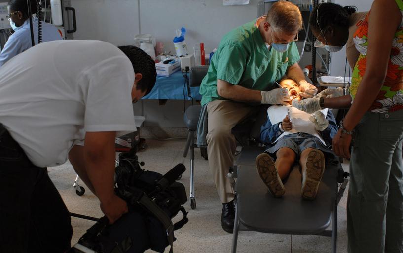 Keywords: US Navy 070723-N-7088A-005 Edgard Aguilar, from Managua Channel 12, videotapes a patient receiving dental care from Capt. Joseph Rusz at the El Realejo Health Care Center, where medical personnel attached to Military Sealift Co.jpg en EL REALEJO Nicaragua July 23 2007 - Edgard Aguilar from Managua Channel 12 videotapes a patient receiving dental care from Capt Joseph Rusz at the El Realejo Health Care Center where medical personnel attached to Military Sealift Command MSC hospital ship USNS Comfort T-AH 20 are providing care Comfort is on a four-month humanitarian deployment to Latin America and the Caribbean to provide medical treatment to patients in a dozen countries U S Navy photo by Mass Communication Specialist 2nd Class Elizabeth Allen RELEASED 2007-07-23 070723-N-7088A-005 Navy http //www navy mil/view_image asp id 48732 U S Navy photo by Mass Communication Specialist 2nd Class Elizabeth Allen PD-USGov-Military-Navy Images from US Navy location EL REALEJO Nicaragua |