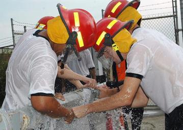 | Keywords: US Navy 070801-N-5215E-004 Naval Academy Midshipmen participate in damage control training exercises at Naval Reserve Center Baltimore.jpg en BALTIMORE Md Aug 1 2007 - Naval Academy Midshipmen participate in damage control training exercises at Naval Reserve Center Baltimore Each year the academy s incoming freshman class takes part in shipboard training simulations as part of Plebe Summer a seven-week initial training phase which helps transition candidates from civilian to military life U S Navy photo by Mass Communication Specialist Seaman Matthew A Ebarb RELEASED 2007-08-01 070801-N-5215E-004 Navy http //www navy mil/view_image asp id 49094 U S Navy photo by Mass Communication Specialist Seaman Matthew A Ebarb PD-USGov-Military-Navy Images from US Navy location BALTIMORE Md |