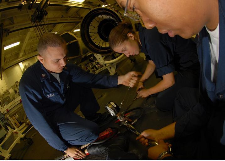 | Keywords: US Navy 070808-N-2910W-001 Sailors use wrenches to calibrate pressure valve to the turbine from a hydraulic pump in the Jet Shop aboard Nimitz-class aircraft carrier USS Abraham Lincoln (CVN 72).jpg en PACIFIC OCEAN Aug 8 2007 - Sailors use wrenches to calibrate pressure valve to the turbine from a hydraulic pump in the Jet Shop aboard Nimitz-class aircraft carrier USS Abraham Lincoln CVN 72 Lincoln and Carrier Air Wing CVW 2 are underway off the coast of Southern California conducting Tailored Ship s Training Availability TSTA U S Navy photo by Mass Communication Specialist Seaman Chantell J Wilson RELEASED 2007-08-08 070808-N-2910W-001 Navy http //www navy mil/view_image asp id 49253 U S Navy photo by Mass Communication Specialist Seaman Chantell J Wilson PD-USGov-Military-Navy Aboard USS Abraham Lincoln CVN-72 |