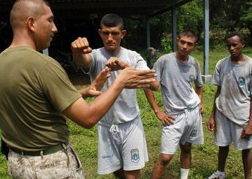 Keywords: US Navy 070808-N-4021H-123 Gunnery Sgt. Octavio Gonzalez assigned to the dock landing ship USS Pearl Harbor (LSD 52), demonstrates proper self defense striking techniques for Honduran Sailors.jpg en AMAPALA Honduras Aug 8 2007 - Gunnery Sgt Octavio Gonzalez assigned to the dock landing ship USS Pearl Harbor LSD 52 demonstrates proper self defense striking techniques for Honduran Sailors while participating in a subject matter expert exchange during Partnership of the Americas POA 2007 POA is a Naval Southern Command deployment that focuses on strengthening bonds and fostering new relations with partner nations through various exercises at sea and on shore throughout South America Latin America and the Caribbean U S Navy photo by Mass Communication Specialist 3rd Class Damien Horvath RELEASED 2007-08-08 070808-N-4021H-123 Navy http //www navy mil/view_image asp id 49319 U S Navy photo by Mass Communication Specialist 3rd Class Damien Horvath PD-USGov-Military-Navy Images from US Navy location AMAPALA Honduras |