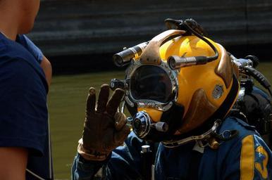 | Keywords: US Navy 070811-N-3093M-021 Chief Navy Diver Scott Maynard attached to Mobile Diving and Salvage Unit (MDSU) 2, readies for a dive into the Mississippi river in support of ongoing search and recovery operations.jpg en MINNEAPOLIS Minn Aug 11 2007 - Chief Navy Diver Scott Maynard attached to Mobile Diving and Salvage Unit MDSU 2 readies for a dive into the Mississippi river in support of ongoing search and recovery operations MDSU 2 has been in Minneapolis supporting local state and federal officials in the wake of the collapse of the I-35 Bridge U S Navy photo by Senior Chief Mass Communication Specialist Andrew McKaskle RELEASED 2007-08-11 070811-N-3093M-021 Navy http //www navy mil/view_image asp id 49430 U S Navy photo by Senior Chief Mass Communication Specialist Andrew McKaskle PD-USGov-Military-Navy I-35W Mississippi River Bridge collapse United States Navy Mobile Diving and Salvage Unit Two Lightweight demand diving helmets Diving hand signals O gesture with thumb and forefinger United States Navy Divers Diving lights Underwater video equipment |