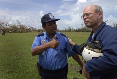 | Keywords: US Navy 070907-N-1810F-029 USS Wasp (LHD 1) Expeditionary Strike Group Commodore Randy Snyder gets the thumbs up from a Nicaraguan police officer during Hurricane Felix disaster relief operations.jpg en PUERTO CABEZAS Nicaragua Sept 7 2007 USS Wasp LHD 1 Expeditionary Strike Group Commodore Randy Snyder gets the thumbs up from a Nicaraguan police officer during Hurricane Felix disaster relief operations U S Southern Command diverted Navy personnel to Nicaragua from an international maritime exercise in Panama on September 5 U S Navy photo by Mass Communication Specialist 2nd Class Todd Frantom RELEASED 2007-09-07 070907-N-1810F-029 Navy http //www navy mil/view_image asp id 50633 U S Navy photo by Mass Communication Specialist 2nd Class Todd Frantom PD-USGov-Military-Navy Images from US Navy location PUERTO CABEZAS Nicaragua Aboard USS Wasp LHD-1 Impact of Hurricane Felix in Nicaragua Pictures by Mass Communication Specialist Todd Frantom Military people with thumbs up Police in Nicaragua |