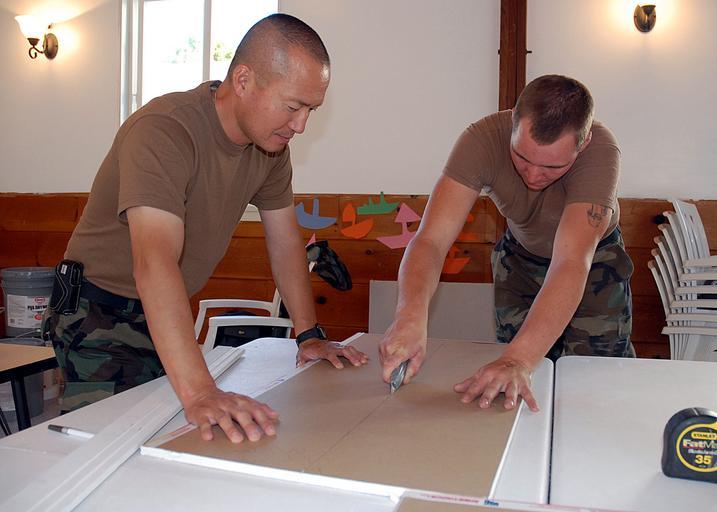 Keywords: US Navy 070911-N-8547M-044 Lt. Song Hwang, chaplain of Naval Mobile Construction Battalion (NMCB) 5, left, and Builder Constructionman Robert L. Dynda, of the battalion^rsquo,s air detachment, cut sheetrock during a constructio.jpg en CAMARILLO Calif Sept 11 2007 - Lt Song Hwang chaplain of Naval Mobile Construction Battalion NMCB 5 left and Builder Constructionman Robert L Dynda of the battalion s air detachment cut sheetrock during a construction project that they and other Seabees volunteered to carry out at a local church U S Navy photo by Mass Communication Specialist 3rd Class Patrick W Mullen III RELEASED 2007-09-11 070911-N-8547M-044 Navy http //www navy mil/view_image asp id 50818 U S Navy photo by Mass Communication Specialist 3rd Class Patrick W Mullen III PD-USGov-Military-Navy Images from US Navy location CAMARILLO Calif Builder United States Navy United States Navy chaplains Drywalls |