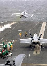 | Keywords: US Navy 070918-N-7282P-024 An F-A-18E Super Hornet, assigned to the.jpg en ATLANTIC OCEAN Sept 18 2007 - An F/A-18E Super Hornet assigned to the Puking Dogs of Strike Fighter Squadron VFA 143 launches off the flight deck of Nimitz-class aircraft carrier USS George Washington CVN 73 George Washington is undergoing carrier qualifications and flight deck certification in preparation for a homeport change to Yokosuka Japan U S Navy photo by Mass Communication Specialist Seaman Apprentice Phillip Pavlovich RELEASED 2007-09-18 070918-N-7282P-024 Navy http //www navy mil/view_image asp id 51043 U S Navy photo by Mass Communication Specialist Seaman Apprentice Phillip Pavlovich PD-USGov-Military-Navy Aboard USS George Washington CVN-73 F/A-18E Super Hornet on flight decks F/A-18 Hornet aircraft carrier launches Steam catapults Strike Fighter Squadron 143 United States Navy |