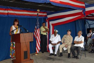 Keywords: US Navy 071002-N-8704K-062 (From left) Ambassador Lisa Bobbie Schreiber Hughes, U.S. Ambassador to Suriname, speaks during an opening ceremony marking hospital ship USNS Comfort^rsquo,s (T-AH 20) arrival to Suriname.jpg en PARAMARIBO Suriname Oct 02 2007 - From left Ambassador Lisa Bobbie Schreiber Hughes U S Ambassador to Suriname speaks during an opening ceremony marking hospital ship USNS Comfort s T-AH 20 arrival to Suriname at the Youth Dental Care Foundation Comfort is on a four-month humanitarian deployment to Latin America and the Caribbean providing medical treatment to patients in a dozen countries U S Navy photo by Mass Communication 2nd Class Joshua Karsten RELEASED 2007-10-02 071002-N-8704K-062 Navy http //www navy mil/view_image asp id 51528 U S Navy photo by Mass Communication 2nd Class Joshua Karsten PD-USGov-Military-Navy Images from US Navy location PARAMARIBO Suriname Lisa Bobbie Schreiber Hughes |