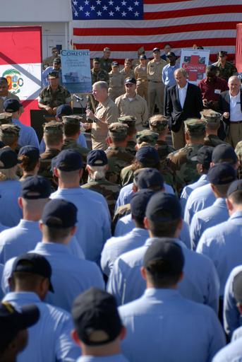 | Keywords: US Navy 071012-N-4238B-179 Chief of Naval Operations (CNO) Adm. Gary Roughead speaks with crew members aboard the hospital ship USNS Comfort (T-AH 20).jpg en ATLANTIC Oct 12 2007 - Chief of Naval Operations CNO Adm Gary Roughead speaks with crew members aboard the hospital ship USNS Comfort T-AH 20 upon completion of their deployment Oct 12 Comfort completed its four-month humanitarian deployment to Latin America and the Caribbean providing medical care to patients in a dozen countries U S Navy photo by Mass Communication Specialist 3rd Class Kelly E Barnes RELEASED 2007-10-12 071012-N-4238B-179 Navy http //www navy mil/view_image asp id 51774 U S Navy photo by Mass Communication Specialist 3rd Class Kelly E Barnes PD-USGov-Military-Navy Images from US Navy location ATLANTIC OCEAN Gary Roughead in 2007 Aboard USNS Comfort T-AH-20 |