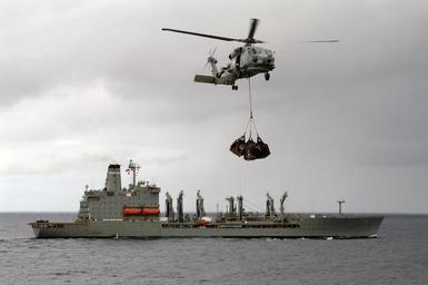 | Keywords: US Navy 071026-N-2559B-001 A helicopter attached to Helicopter Anti-Submarine Squadron Light (HSL) 46, transfers supplies to guided-missile destroyer Forrest Sherman (DDG 98) from Military Sealift Command (MSC) underway repleni.jpg en ATLANTIC OCEAN Oct 26 2007 - A helicopter attached to Helicopter Anti-Submarine Squadron Light HSL 46 transfers supplies to guided-missile destroyer Forrest Sherman DDG 98 from Military Sealift Command MSC underway replenishment oiler USNS Big Horn T-AO 198 Forrest Sherman is visiting nations on Africa's west coast as part of U S Naval Forces Europe's West and Central Africa Task Group U S Navy photo by Ensign Joshua H Tiley RELEASED 2007-10-26 071026-N-2559B-001 Navy http //www navy mil/view_image asp id 52245 U S Navy photo by Ensign Joshua H Tiley PD-USGov-Military-Navy USNS Big Horn T-AO-198 |