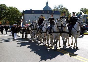 Keywords: US Navy 071031-N-5215E-014 The Caisson platoon of the U.S. Army's 3rd Infantry Division, also known as the Old Guard, leads the funeral procession for former Chairman of the Joint Chiefs of Staff, Adm. William J. Crowe, en rout.jpg en ANNAPOLIS Md Oct 31 2007 - The Caisson platoon of the U S Army's 3rd Infantry Division also known as the Old Guard leads the funeral procession for former Chairman of the Joint Chiefs of Staff Adm William J Crowe en route to the U S Naval Academy Cemetery Crowe who died Oct 18 at the age of 82 was buried alongside his friend and classmate Vice Adm James B Stockdale Chairman of the Joint Chiefs of Staff Adm Michael G Mullen and former President William Clinton spoke at Crowe's service in the Naval Academy Chapel U S Navy photo by Mass Communication Specialist Seaman Matthew A Ebarb RELEASED 2007-10-31 071031-N-5215E-014 Navy http //www navy mil/view_image asp id 52346 U S Navy photo by Mass Communication Specialist Seaman Matthew A Ebarb PD-USGov-Military-Navy United States Naval Academy William J Crowe Jr Funeral processions in the United States |