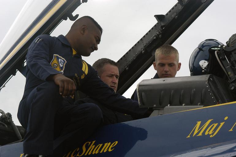 | Keywords: US Navy 071031-N-8102J-019 Brian Schneider, catcher for the Washington Nationals baseball team, receives preflight instructions from the crew chief, Marine Corps Staff Sgt. Deo Harrypersaud, before taking a ride in a Blue Angel.jpg en MAYPORT Fla Oct 31 2007 - Brian Schneider catcher for the Washington Nationals baseball team receives preflight instructions from the crew chief Marine Corps Staff Sgt Deo Harrypersaud before taking a ride in a Blue Angels F/A-18 Hornet The Blue Angels are in Jacksonville Fla for the 2007 Sea and Sky Spectacular Nov 2-4 celebrating the 232nd birthday of the United States Navy and honoring the men and women who served and continue to wear the military uniform with pride U S Navy photo by Mass Communication Specialist 1st Class Toiete Jackson RELEASED 2007-10-31 071031-N-8102J-019 Navy http //www navy mil/view_image asp id 52350 U S Navy photo by Mass Communication Specialist 1st Class Toiete Jackson PD-USGov-Military-Navy Naval Station Mayport Brian Schneider Blue Angels pilots and team |