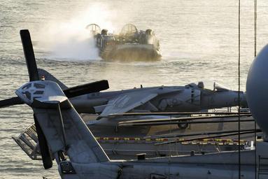 Keywords: US Navy 071111-N-4010S-128 A landing craft air cushion (LCAC) from the.jpg en PO HANG Korea Nov 11 2007 A landing craft air cushion LCAC from the Dragons of Assault Craft Unit ACU 5 Det Western Pacific return to the amphibious assault ship USS Essex LHD 2 with Republic of Korea army soldiers participating in the Korean Interoperability Training Program Essex is the lead ship of the only forward-deployed U S Expeditionary Strike Group and serves as the flagship for CTF 76 the Navy's only forward-deployed amphibious force commander Task Force 76 is headquartered at White Beach Naval Facility Okinawa Japan with a detachment in Sasebo Japan U S Navy photo by Chief Mass Communication Specialist Ty Swartz Released 2007-11-11 071111-N-4010S-128 Navy http //www navy mil/view_image asp id 52798 U S Navy photo by Chief Mass Communication Specialist Ty Swartz PD-USGov-Military-Navy Images from US Navy location PO HANG Korea LCAC-57 ship 1993 |