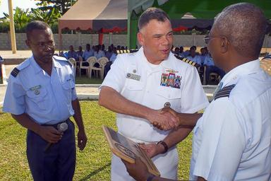 Keywords: US Navy 071128-N-8483H-005 Africa Partnership Station united Sailors from the U.S. Navy, airmen from Ghanaian air force, and soldiers from the Ghanaian army during a musical performance at Takoradi Air Station.jpg en TAKORADI Ghana Nov 28 2007 Africa Partnership Station united Sailors from the U S Navy airmen from Ghanaian air force and soldiers from the Ghanaian army during a musical performance at Takoradi Air Station The Sailors from the Commander Naval Forces Europe CNE Band spent three days with their host country nationals preparing for the event APS is an international effort aiming to enhance regional maritime safety and security in West and Central Africa that will bring international training teams from 14 different countries to Cameroon Gabon Ghana Senegal and Sao Tome and Principe and support more than 20 humanitarian assistance projects in the region U S Navy photo by Mass Communication Specialist 3rd Class James Hills Released 2007-11-28 071128-N-8483H-005 Navy http //www navy mil/view_image asp id 53398 U S Navy photo by Mass Communication Specialist 3rd Class James Hills PD-USGov-Military-Navy United States Navy in Ghana 2007 United States Navy in Sekondi-Takoradi Handshakes involving the military Africa Partnership Station 2007 People of the Ghana Army People of Ghana in 2007 |