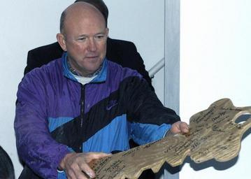 Keywords: US Navy 071215-N-4680O-107 Habitat for Humanity Representative Jack Ferguson holds a key from Habitat for Humanity during a house dedication ceremony.jpg en NORFOLK Va Dec 15 2007 Habitat for Humanity Representative Jack Ferguson holds a key from Habitat for Humanity during a house dedication ceremony Volunteers from the multi-purpose amphibious assault ship USS Bataan LHD 5 volunteered their time to help Habitat for Humanity build two houses that were dedicated that day U S Navy photograph by Mass Communication Specialist Seaman Shamus O'Neill Released 2007-12-15 071215-N-4680O-107 Navy http //www navy mil/view_image asp id 53916 U S Navy photo PD-USGov-Military-Navy Naval Station Norfolk Aboard USS Bataan LHD-5 Oversized keys |