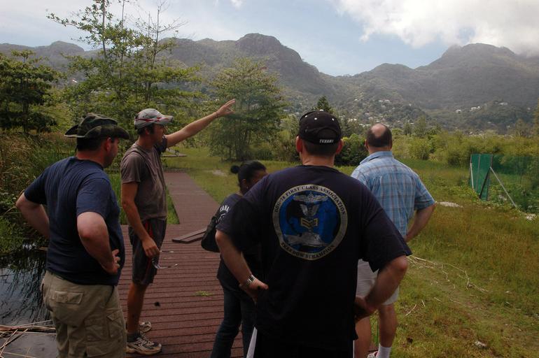 Keywords: US Navy 071218-N-4014G-105 Michael Dale, the Wetlands Manager of the Roche Caiman Bird Sanctuary, gives a tour to community relations project volunteers.jpg en VICTORIA Seychelles Dec 18 2007 Michael Dale the Wetlands Manager of the Roche Caiman Bird Sanctuary gives a tour to community relations project volunteers attached to the guided-missile destroyer USS Porter DDG 78 Porter is part of the Kearsarge Expeditionary Strike Group conducting maritime security operations in the 5th Fleet area of operations U S Navy photo by Mass Communication Specialist 3rd Class Patrick Gearhiser Released 2007-12-18 071218-N-4014G-105 Navy http //www navy mil/view_image asp id 54139 U S Navy photo by Mass Communication Specialist 3rd Class Patrick Gearhiser PD-USGov-Military-Navy Images from US Navy location PORT VICTORIA Seychelles |