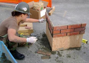 Keywords: US Navy 080105-N-4357J-003 Builder 3rd Class Courtney Bombardo, assigned to NMCB-5, builds brick veneer mock-ups in preparation to install on the newly constructed Main Gate Guard House in Akasaki, Japan.jpg en SASEBO Japan Jan 5 2008 Builder 3rd Class Courtney Bombardo assigned to Naval Mobile Construction Battalion NMCB 5 builds brick veneer mock-ups in preparation to install on the newly constructed Main Gate Guard House in Akasaki Japan NMCB-5 is currently deployed to 11 different locations in the Pacific area of responsibility to provide construction support to area commanders U S Navy photo by Lt Jared A Jasinski Released 2008-01-05 080105-N-4357J-003 Navy http //www navy mil/view_image asp id 54586 U S Navy photo by Lt Jared A Jasinski PD-USGov-Military-Navy Sasebo Nagasaki Builder United States Navy Naval Mobile Construction Battalion 5 Women in the United States Navy Women with hard hats |