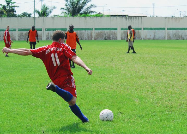 MAKE A MEME View Large Image Navy 080113-N-8933S-043 Information Systems Technician 2nd Class Mark Heier, assigned to the amphibious dock landing ship USS Fort McHenry (LSD 43) as part of Africa Partnership Station (APS), plays soccer with local Gabones.jpg en PORT ...