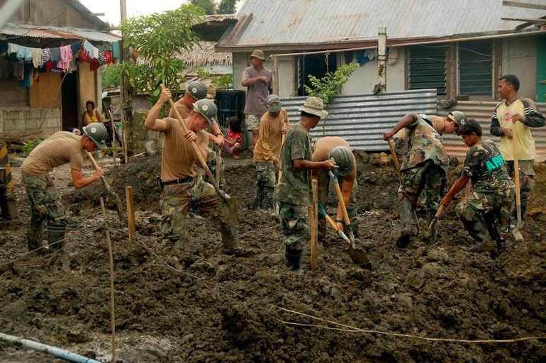 | Keywords: US Navy 080610-N-7498L-732 Seabees assigned to Naval Mobile Construction Battalion (NMCB) 133 and Armed Forces of the Philippines soldiers from the 546th Engineer Construction Battalion work together to dig a small trench.jpg en CALBAYOG CITY Philippines June 10 2008 Seabees assigned to Naval Mobile Construction Battalion NMCB 133 and Armed Forces of the Philippines soldiers from the 546th Engineer Construction Battalion work together to dig a small trench at the site of the future septic tank filtration system for the Greenland subdivision septic tank project they are building as part of a Pacific Partnership engineering civic action program Pacific Partnership not only builds structures that would benefit the local communities but also helps to build friendships between the people of the Philippines and the United States U S Navy photo by Mass Communication Specialist 2nd Class Mark Logico Released 2008-06-10 080610-N-7498L-732 Navy http //www navy mil/view_image asp id 60175 U S Navy photo by Mass Communication Specialist 2nd Class Mark Logico PD-USGov-Military-Navy Images from US Navy location CALBAYOG CITY Philippines Naval Mobile Construction Battalion 133 Construction in the Philippines |