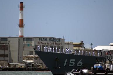 Keywords: US Navy 080626-N-6430R-030 Japanese sailors aboard the Japanese Maritime Self Defense Force ship JS Setogori (DD 156) arrive in Pearl Harbor for the Rim of the Pacific (RIMPAC) 2008 exercise.jpg JS Setogori DD-156 arrive in Pearl Harbor for the Rim of the Pacific RIMPAC 2008 exercise RIMPAC the world's largest multinational exercise is scheduled biennially by U S Pacific Fleet and takes place in the Hawaiian operating area during June 29 - July 31 Participants include Australia Canada Chile Japan Netherlands Peru Republic of Korea Singapore United Kingdom and the U S India Colombia Mexico and Russia are scheduled to send observers U S Navy photo by Mass Communication Specialist 3rd Class Thomas L Rosprim Released 2008-06-26 080626-N-6430R-030 Navy http //www navy mil/view_image asp id 60741 Thomas L Rosprim U S Navy PD-USGov-Military-Navy JS Setogiri DD-156 Japanese warships at Pearl Harbor RIMPAC 2008 |