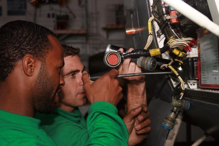 | Keywords: US Navy 080629-N-7446H-041 Aviation Electrician's Mate 3rd Class Garrett Atkinson, background, from Denver, Colo., holds a flashlight as Aviation Electrician's Mate 2nd Class Glen Thibodeaux, from Houston, installs an emergency.jpg en PACIFIC OCEAN June 29 2008 Aviation Electrician's Mate 3rd Class Garrett Atkinson background from Denver Colo holds a flashlight as Aviation Electrician's Mate 2nd Class Glen Thibodeaux from Houston installs an emergency battery in a Strike Fighter Squadron 195 F/A-18C Hornet in the hangar bay aboard the aircraft carrier USS Kitty Hawk CV 63 U S Navy photo by Mass Communication Specialist 2nd Class Derek J Hurder Released 2008-06-29 080629-N-7446H-041 Navy http //www navy mil/view_image asp id 60936 U S Navy photo by Mass Communication Specialist 2nd Class Derek J Hurder PD-USGov-Military-Navy Aboard USS Kitty Hawk CV-63 Aviation Electrician's Mate |