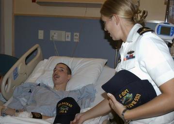 | Keywords: US Navy 080703-N-1467R-001 Ens. Kerri Ackman assigned to the multi-purpose amphibious assault ship USS Bataan (LHD 5) gives a command ball cap to Michael Moniz of Fall River, Mass., at the Boston Medical Center.jpg en BOSTON Mass July 3 2008 Ens Kerri Ackman assigned to the multi-purpose amphibious assault ship USS Bataan LHD 5 gives a command ball cap to Michael Moniz of Fall River Mass at the Boston Medical Center as part of a community relations project Caps for Kids Bataan is in Boston participating in the 27th Annual Boston Harborfest 2008 a six-day long 4th of July festival showcasing the colonial and maritime heritage of the cradle of the American Revolution U S Navy photo by Mass Communication Specialist 2nd Class Pedro A Rodriguez Released 2008-07-03 080703-N-1467R-001 Navy http //www navy mil/view_image asp id 61060 U S Navy photo by Mass Communication Specialist 2nd Class Pedro A Rodriguez PD-USGov-Military-Navy Military in Massachusetts Aboard USS Bataan LHD-5 |