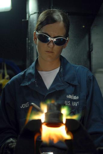 Keywords: US Navy 080705-N-1635S-003 Hull Technician Fireman Donna Jones, from Mentone, Texas, performs a brazing job in the pipe shop aboard the Nimitz-class aircraft carrier USS Ronald Reagan (CVN 76).jpg en PACIFIC OCEAN July 5 2008 Hull Technician Fireman Donna Jones from Mentone Texas performs a brazing job in the pipe shop aboard the Nimitz-class aircraft carrier USS Ronald Reagan CVN 76 Jones was selected by her chain of command as the Hard Charger of the Month for June The Ronald Reagan Carrier Strike Group is on a scheduled deployment in the U S 7th Fleet area of responsibility U S Navy photo by Mass Communication Specialist 3rd Class Joshua Scott Released 2008-07-05 080705-N-1635S-003 Navy http //www navy mil/view_image asp id 61026 U S Navy photo by Mass Communication Specialist 3rd Class Joshua Scott PD-USGov-Military-Navy Taken with Nikon D200 Brazing Aboard USS Ronald Reagan CVN-76 Mentone Texas |