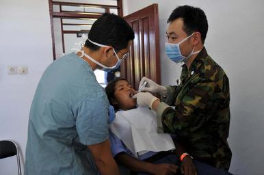 Keywords: US Navy 080723-N-4128S-084 South Korean Navy Lt. Michael Sim and Brian Huh extract a patient's tooth.jpg en GLENO East Timor July 20 2008 South Korean Navy Lt Michael Sim right from Seoul Korea and Brian Huh a University of California San Diego pre-dental student from Santa Monica Calif extract a patient's tooth at a Pacific Partnership dental civic action project Pacific Partnership is a four-month deployment by Mercy to assist the governments of participating nations with medical dental and construction civic assistance programs U S Navy photo by Mass Communication Specialist 2nd Class Joseph Seavey/Released 2008-07-20 080723-N-4128S-084 Navy http //www navy mil/view_image asp id 61789 U S Navy photo by Mass Communication Specialist 2nd Class Joseph Seavey PD-USGov-Military-Navy Gleno United States Navy images from East Timor Naval officers of South Korea |