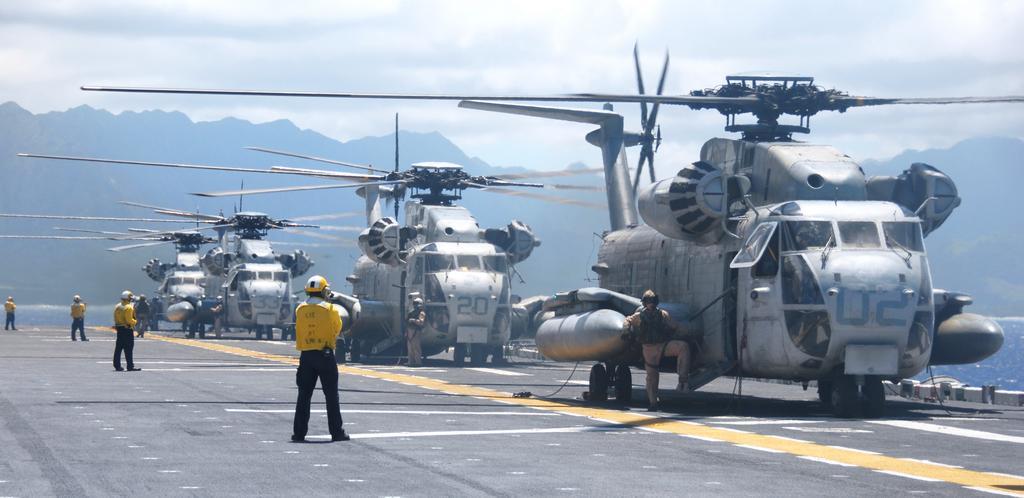 Keywords: US Navy 080726-N-9493W-062 Four landing signal enlisted prepare to launch CH-53D Sea Stallions from the flight deck of the amphibious assault ship USS Bonhomme Richard (LHD 6).jpg en PACIFIC OCEAN July 26 2008 Four landing signal enlisted prepare to launch CH-53D Sea Stallions assigned to Heavy Marine Helicopter Squadron HMH 362 from the flight deck of the amphibious assault ship USS Bonhomme Richard LHD 6 during flight operations Bonhomme Richard is participating in Rim of the Pacific 2008 U S Navy photo by Mass Communication Specialist 2nd Class Justin Webb/Released 2008-07-26 080726-N-9493W-062 Navy http //www navy mil/view_image asp id 61908 U S Navy photo by Mass Communication Specialist 2nd Class Justin Webb PD-USGov-Military-Navy Marine Heavy Helicopter Squadron 362 Sikorsky CH-53A/D Sea Stallion U S Marine Corps Aboard USS Bonhomme Richard LHD-6 Taken with Nikon D200 |