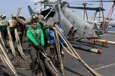 | Keywords: US Navy 080827-N-3610L-145 An aviation boatswain's mate assists in the stowage of a barricade net.jpg en INDIAN OCEAN Aug 27 2008 An aviation boatswain's mate assists in the stowage of a barricade net concluding a series of drills on the flight deck of the Nimitz-class aircraft carrier USS Ronald Reagan CVN 76 Ronald Reagan is deployed in the U S 5th Fleet area of responsibility U S Navy photo by Mass Communication Specialist 3rd Class Torrey W Lee/Released 2008-08-27 080827-N-3610L-145 Navy http //www navy mil/view_image asp id 63195 U S Navy photo by Mass Communication Specialist 3rd Class Torrey W Lee PD-USGov-Military-Navy Aviation Boatswain's Mates Aboard USS Ronald Reagan CVN-76 Barricades aircraft carrier |