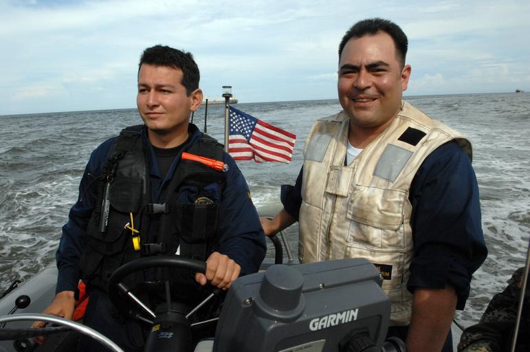 | Keywords: US Navy 080902-N-7544A-074 Chief Boatswain's Mate Daniel Chavez and a member of the Colombian Coast Guard drive a rigid inflatable boat.jpg en SANTA MARTA Colombia Sept 2 2008 Chief Boatswain's Mate Daniel Chavez assigned to the amphibious assault ship USS Kearsarge LHD 3 and a member of the Colombian Coast Guard drive a rigid inflatable boat at a training exercise at the Santa Marta Coast Guard base during an information exchange conducted as part of the humanitarian and civic assistance mission Continuing Promise CP 2008 CP is an equal-partnership mission between the United States Canada Dominican Republic Trinidad and Tobago and Guyana U S Navy photo by Mass Communication Specialist 3rd Class Maddelin Angebrand/Released 2008-09-02 080902-N-7544A-074 Navy http //www navy mil/view_image asp id 63549 U S Navy photo by Mass Communication Specialist 3rd Class Maddelin Angebrand PD-USGov-Military-Navy Santa Marta Aboard USS Kearsarge LHD-3 |