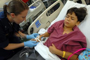 Keywords: US Navy 081010-N-3595W-830 Lt. j.g. Megan Murphy takes care of twin brothers after eye surgery.jpg en CARIBBEAN SEA Oct 10 2008 Lt j g Megan Murphy takes care of twin brothers from the Dominican Republic after eye surgery aboard the amphibious assault ship USS Kearsarge LHD 3 The boys were born with a condition know as Strabimus or crossed eyes Kearsarge is the supporting the Caribbean phase of Continuing Promise 2008 an equal-partnership humanitarian/civic assistance mission involving the United States Canada the Netherlands Brazil France Nicaragua Colombia Dominican Republic Trinidad and Tobago and Guyana U S Navy photo by Mass Communication Specialist 2nd Class Gina Wollman/Released 2008-10-10 081010-N-3595W-830 Navy http //www navy mil/view_image asp id 65132 U S Navy photo by Mass Communication Specialist 2nd Class Gina Wollman PD-USGov-Military-Navy Aboard USS Kearsarge LHD-3 |