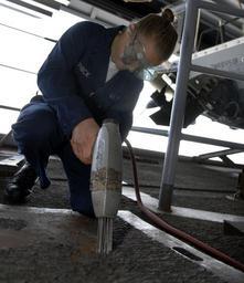 | Keywords: US Navy 081011-N-0673M-023 Aviation Ordnanceman Airman Chelsey Krupnick uses a pneumatic grinder to remove non-skid.jpg en PACIFIC OCEAN Oct 11 2008 Aviation Ordnanceman Airman Chelsey Krupnick from Woodland Hills Calif uses a pneumatic grinder to remove non-skid from a deck plate on the fantail aboard the Nimitz-class aircraft carrier USS John C Stennis CVN 74 Stennis is conducting pre-deployment exercises off the coast of Southern California U S Navy Photo By Mass Communication Specialist Seaman Kevin Murphy/Released 2008-10-11 081011-N-0673M-023 Navy http //www navy mil/view_image asp id 65180 U S Navy Photo By Mass Communication Specialist Seaman Kevin Murphy PD-USGov-Military-Navy Aviation Ordnanceman Aboard USS John C Stennis CVN-74 |