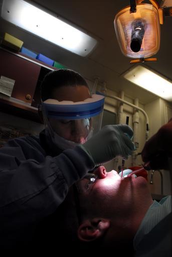| Keywords: US Navy 081011-N-9610C-007 ospital Corpsman Dami-anne Boykin gives Aviation Electronics Technician 3rd Class Michael Morgan his yearly tooth cleaning.jpg en PACIFIC OCEAN Oct 11 2008 Hospital Corpsman Dami-anne Boykin from Carrollton Ga gives Aviation Electronics Technician 3rd Class Michael Morgan from Hart Mich his yearly tooth cleaning in health services department's dental office aboard the Nimitz-class aircraft carrier USS John C Stennis CVN 74 Stennis is conducting pre-deployment exercises off the coast of Southern California U S Navy photo by Mass Communication Specialist 3rd Class Dmitry Chepusov/Released 2008-10-11 081011-N-9610C-007 Navy http //www navy mil/view_image asp id 65282 U S Navy photo by Mass Communication Specialist 3rd Class Dmitry Chepusov PD-USGov-Military-Navy Aboard USS John C Stennis CVN-74 Hospital Corpsman Aviation Electronics Technician Face shields |