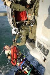 Keywords: US Navy 081112-N-9620B-013 Team members from Helicopter Sea Combat Squadron (HSC) 28, Detachment 5 embarked aboard the amphibious assault ship USS Kearsarge (LHD 3) hoist a Norwegian man during a search and rescue medical evacu.jpg en ATLANTIC OCEAN Nov 12 2008 Aviation Warfare Systems Operator 2nd Class Zachary Gillespie and Aviation Warfare Systems Operator 3rd Class Phillip Gonzales both assigned to Helicopter Sea Combat Squadron HSC 28 Detachment 5 embarked aboard the amphibious assault ship USS Kearsarge LHD 3 hoist a Norwegian man from the ocean-going tug SVC Tanux II during a search and rescue medical evacuation Kearsarge launched a search-and-rescue aircraft in response to an emergency medical distress call The victim was transported to Guyana for further medical evaluation Kearsarge is supporting the Caribbean Phase of the humanitarian and civic assistance mission Continuing Promise 2008 an equal partnership mission between the United States Canada the Netherlands Brazil Nicaragua Colombia Dominican Republic Trinidad and Tobago and Guyana U S Navy photo by Mass Communication Specialist 2nd Class Erik Barker/Released 2008-11-12 081112-N-9620B-013 Navy http //www navy mil/view_image asp id 66420 U S Navy photo by Mass Communication Specialist 2nd Class Erik Barker PD-USGov-Military-Navy Aboard USS Kearsarge LHD-3 Helihoisting of people Helicopter Sea Combat Squadron 28 United States Navy