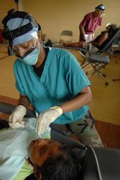 | Keywords: US Navy 081116-N-7544A-113 Tech Sgt. Carletta James, an Air Force dental assistant embarked aboard the amphibious assault ship USS Kearasrge (LHD 3), cleans a patient's teeth.jpg en SANTA ROSA Guyana Nov 16 2008 Tech Sgt Carletta James an Air Force dental assistant embarked aboard the amphibious assault ship USS Kearasrge LHD 3 cleans a patient's teeth at a medical civil assistance project in Santa Rosa during the humanitarian and civic assistance mission Continuing Promise 2008 Kearsarge is the primary platform supporting the Caribbean phase of Continuing Promise an equal partnership mission between the United States Canada the Netherlands Brazil Nicaragua Colombia Dominican Republic Trinidad and Tobago and Guyana U S Navy photo by Mass Communication Specialist 3rd Class Maddelin Angebrand/Released 2008-11-16 081116-N-7544A-113 Navy http //www navy mil/view_image asp id 66556 U S Navy photo by Mass Communication Specialist 3rd Class Maddelin Angebrand PD-USGov-Military-Navy People of Guyana Aboard USS Kearsarge LHD-3 |