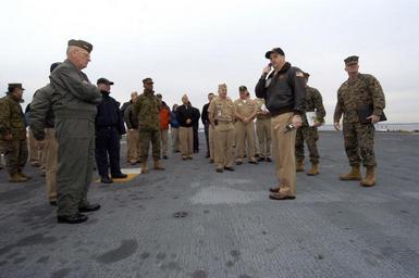 Keywords: US Navy 081202-N-2636M-120 Cmdr. Michael McMillan speaks about the flight deck to distinguished visitors during a Boots-on-the-Deck visit.jpg en NORFOLK Dec 2 2008 Cmdr Michael McMillan Air Boss aboard the amphibious assault ship USS Bataan LHD 5 speaks about the flight deck to distinguished visitors during a visit is an initiative intended to give NAVAIR leadership face-to-face interaction with Sailors from sea-based parts of the Naval Aviation Enterprise in order to improve business practices U S Navy photo by Mass Communication Specialist 3rd Class Kleynia R McKnight/Released 2008-12-02 081202-N-2636M-120 Navy http //www navy mil/view_image asp id 67058 U S Navy photo by Mass Communication Specialist 3rd Class Kleynia R McKnight PD-USGov-Military-Navy Naval Station Norfolk Aboard USS Bataan LHD-5 |