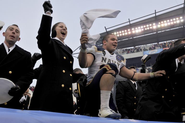 Keywords: US Navy 081206-N-4565G-364 U.S. Naval Academy midshipmen celebrate after beating the U.S. Military Academy Black Knights 34 to 0 in the 109th Army-Navy college football game at Lincoln Financial Field in Philadelphia.jpg en PHILADELPHIA Dec 6 2008 U S Naval Academy midshipmen celebrate after beating the U S Military Academy Black Knights 34 to 0 in the 109th Army-Navy college football game at Lincoln Financial Field in Philadelphia U S Navy photo by Mass Communication Specialist 2nd Class Tommy Gilligan/Released 2008-12-06 081206-N-4565G-364 Navy http //www navy mil/view_image asp id 67168 U S Navy photo by Mass Communication Specialist 2nd Class Tommy Gilligan PD-USGov-Military-Navy 2008 Army-Navy Game |