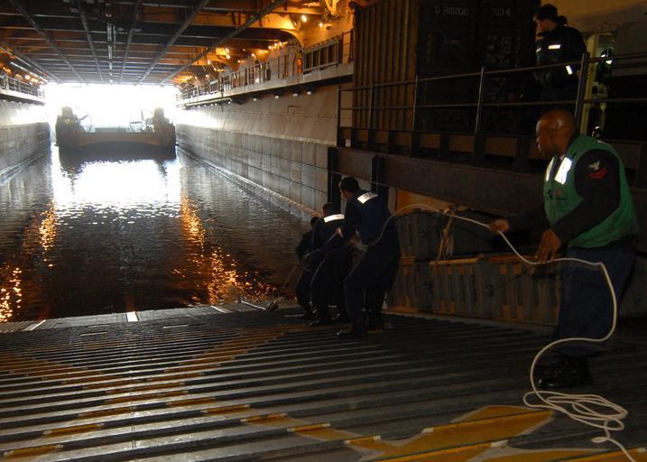 Keywords: US Navy 090109-N-6282K-221 A landing craft air cushion embarks aboard USS Iwo Jima (LHD 7).jpg en PERSIAN GULF Jan 9 2009 Boatswain s Mates pull a landing craft air cushion from Assault Craft Unit ACU 4 into the well deck of the multi-purpose amphibious assault ship USS Iwo Jima LHD 7 during an emergency recovery drill Iwo Jima is deployed as part of the Iwo Jima Expeditionary Strike Group supporting maritime security operations in the U S 5th Fleet area of responsibility U S Navy photo by Mass Communication Specialist 3rd Class Bryant Kurowski/Released 2009-01-09 090109-N-6282K-221 Navy http //www navy mil/view_image asp id 67907 U S Navy photo by Mass Communication Specialist 3rd Class Bryant Kurowski PD-USGov-Military-Navy Aboard USS Iwo Jima LHD-7 Landing Craft Air Cushion Well decks |
