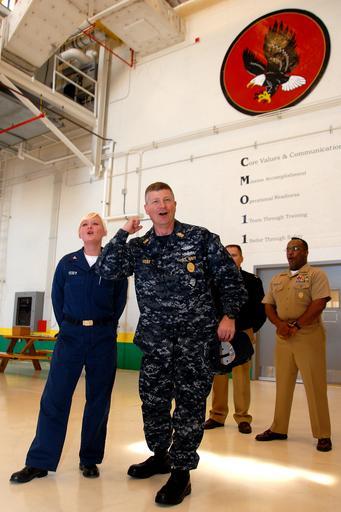 | Keywords: US Navy 090220-N-3013W-093 Master Chief Petty Officer of the Navy (MCPON) Rick West is assisted by Aviation Structural Mechanic 3rd Class Tifani Vesey in delivering a Navy.jpg en JACKSONVILLE Fla February 20 2009 Master Chief Petty Officer of the Navy MCPON Rick West is assisted by Aviation Structural Mechanic 3rd Class Tifani Vesey from Seagoville Texas in delivering a Navy hooyah to the Sailors of Patrol Squadron VP 16 U S Navy photo by Mass Communication Specialist 2nd Class Charles White/Released 2009-02-20 090220-N-3013W-093 Navy http //www navy mil/view_image asp id 69045 U S Navy photo by Mass Communication Specialist 2nd Class Charles White PD-USGov-Military-Navy 2009 at Naval Air Station Jacksonville Rick D West |