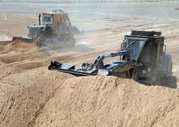 | Keywords: US Navy 090305-N-1120L-078 Seabees assigned to Naval Mobile Construction Battalion (NMCB) 7 use an up-armored bulldozer and front end loader to build protective berms for a forward operating base.jpg en HELMAND PROVINCE Afghanistan March 4 2009 Seabees assigned to Naval Mobile Construction Battalion NMCB 7 use an up-armored bulldozer and front end loader to build protective berms for a forward operating base Building berms is an essential task that provides protection from direct fire from small arms and crew served weapons to alliance forces occupying the forward operating base NMCB-7 is deployed to Afghanistan providing contingency construction support to alliance forces in support of NATO International Security Assistance Force U S Navy photo by Mass Communication Specialist 2nd Class Michael B Lavender/Released 2009-03-04 090305-N-1120L-078 Navy http //www navy mil/view_image asp id 69405 U S Navy photo by Mass Communication Specialist 2nd Class Michael B Lavender PD-USGov-Military-Navy Helmand Province in the War in Afghanistan 2001-present Earthworks in Afghanistan Military bulldozers Naval Mobile Construction Battalion 7 Berms fortification Military loaders |
