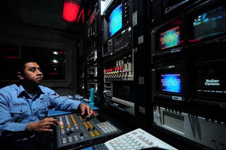 | Keywords: US Navy 090324-N-3946H-008 Mass Communication Specialist 3rd Class Michael Tialemasunu performs a daily operational check on the Integrated Training and Entertainment Television (SITE TV) system aboard the nuclear-powered aircr.jpg en PACIFIC OCEAN March 24 2009 Mass Communication Specialist 3rd Class Michael Tialemasunu performs a daily operational check on the Integrated Training and Entertainment Television SITE TV system aboard the nuclear-powered aircraft carrier USS Nimitz CVN 68 SITE TV is a closed-circuit television network used to broadcast movies television shows and naval training programs throughout the ship Nimitz is currently conducting Fleet Replacement Squadron Carrier Qualification off the coast of Southern California U S Navy photo by Mass Communication Specialist 3rd Class Patrick Heil/Released 2009-03-24 090324-N-3946H-008 Navy http //www navy mil/view_image asp id 70035 U S Navy photo by Mass Communication Specialist 3rd Class Patrick Heil PD-USGov-Military-Navy Aboard USS Nimitz CVN-68 Mass Communication Specialist |