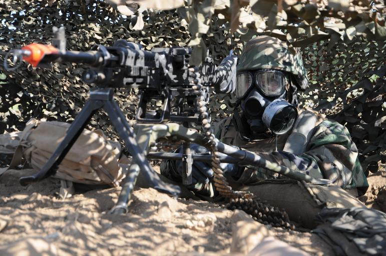 | Keywords: US Navy 090423-N-9584H-018 Builder 3rd Class Richard Snyder mans an M240B machine gun in his fighting position after a simulated chemical, biological, and radiological attack.jpg en FORT HUNTER LIGGETT Calif April 23 2009 Builder 3rd Class Richard Snyder mans an M240B machine gun in his fighting position after a simulated chemical biological and radiological attack during Operation Bearing Duel 2009 Bearing Duel is an annual Field Training Exercise to test the battalion Äôs ability to deploy to a contingency environment U S Navy photo by Mass Communication Specialist Seaman Ernesto Hernandez Fonte/Released 2009-04-23 090423-N-9584H-018 Navy http //www navy mil/view_image asp id 70985 U S Navy photo by Mass Communication Specialist Seaman Ernesto Hernandez Fonte PD-USGov-Military-Navy Fort Hunter Liggett Builder United States Navy M-240 machine gun Camouflage nettings Males wearing gas masks Operation Bearing Duel 2009 Blank-firing adaptor M40 Field Protective Mask |