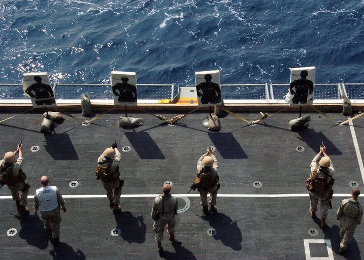 Keywords: US Navy 090603-N-6720T-122 Marines from Fleet Anti-Terrorism Security Team Pacific (FASTPAC) participate in a live-fire exercise aboard the aircraft carrier USS George Washington (CVN 73).jpg en PACIFIC OCEAN June 3 2009 Marines from Fleet Anti-Terrorism Security Team Pacific FASTPAC participate in a live-fire exercise aboard the aircraft carrier USS George Washington CVN 73 George Washington completed a Combat Operations Efficiency evaluation in preparation for its first summer deployment from Fleet Activities Yokosuka as the Navy's only permanently forward deployed aircraft carrier U S Navy photo by Mass Communication Specialist Seaman Adam K Thomas/Released 2009-06-03 090603-N-6720T-122 Navy http //www navy mil/view_image asp id 72412 U S Navy photo by Mass Communication Specialist Seaman Adam K Thomas PD-USGov-Military-Navy Aboard USS George Washington CVN-73 Pistol shooting Fleet Antiterrorism Security Team M9 pistol |
