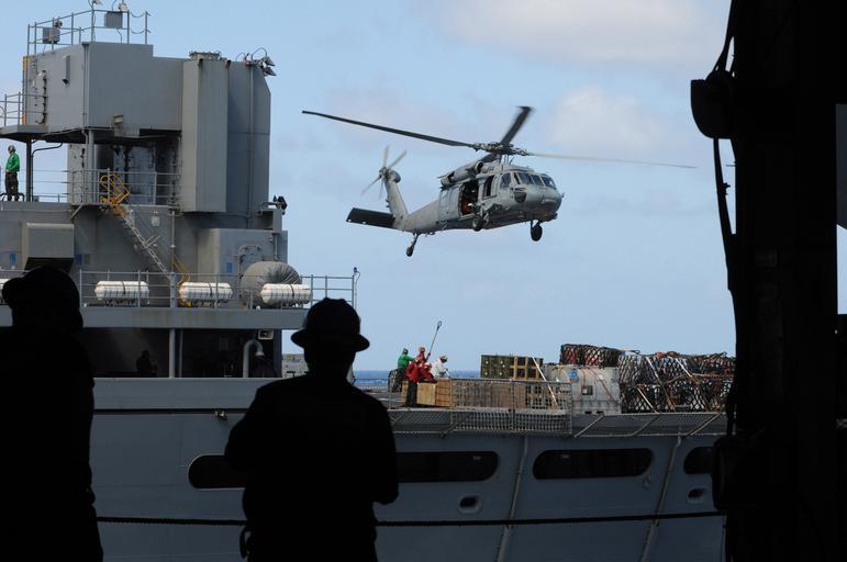 | Keywords: US Navy 090605-N-4995K-044 Sailors aboard the aircraft carrier USS Ronald Reagan (CVN 76) watch through hangar bay.jpg en PACIFIC OCEAN June 05 2009 Sailors aboard the aircraft carrier USS Ronald Reagan CVN 76 watch through hangar bay 2 as an MH-60S Sea Hawk helicopter assigned to the Blackjacks of Helicopter Sea Combat Squadron HSC 21 lowers to hook a cargo pendant from the Military Sealift Command fast combat support ship USNS Rainier T-AOE 7 during a replenishment at sea Ronald Reagan is underway on a routine deployment to the western Pacific Ocean U S Navy photo by Mass Communication Specialist 3rd Class AW Chelsea Kennedy/Released 2009-06-05 090605-N-4995K-044 Navy http //www navy mil/view_image asp id 72484 U S Navy photo PD-USGov-Military-Navy Hangar bays of USS Ronald Reagan CVN-76 MH-60S Seahawk Helicopter Sea Combat Squadron 21 United States Navy |