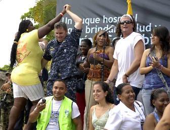 Keywords: US Navy 090616-F-7923S-276 Carlos Vives, a Colombian music artist and humanitarian, performs during the Continuing Promise 2009 closing ceremonies for Colombia.jpg en TUMACO Colombia June 16 2009 Carlos Vives a Colombian music artist and humanitarian performs during the Continuing Promise 2009 closing ceremonies for Colombia as Capt Bob Lineberry Continuing Promise mission commander dances with a local woman at the Max Seidel School Medical teams aboard the Military Sealift Command hospital ship USNS Comfort T-AH 20 have treated more than 45 000 patients throughout the current Continuing Promise mission Continuing Promise combines U S military and interagency personnel non-governmental organizations civil service mariners academic and partner nations to provide medical dental veterinary and engineering services afloat and ashore alongside host nation personnel Comfort is scheduled to depart Colombia June 17 as it gears up for continued humanitarian and civic assistance in El Salvador and Nicaragua U S Air Force photo by Airman 1st Class Benjamin Stratton/Released 2009-06-16 090616-F-7923S-276 Navy http //www navy mil/view_image asp id 72782 U S Air Force photo by Airman 1st Class Benjamin Stratton PD-USGov-Military-Navy Images from US Navy location TUMACO Colombia Aboard USNS Comfort T-AH-20 |